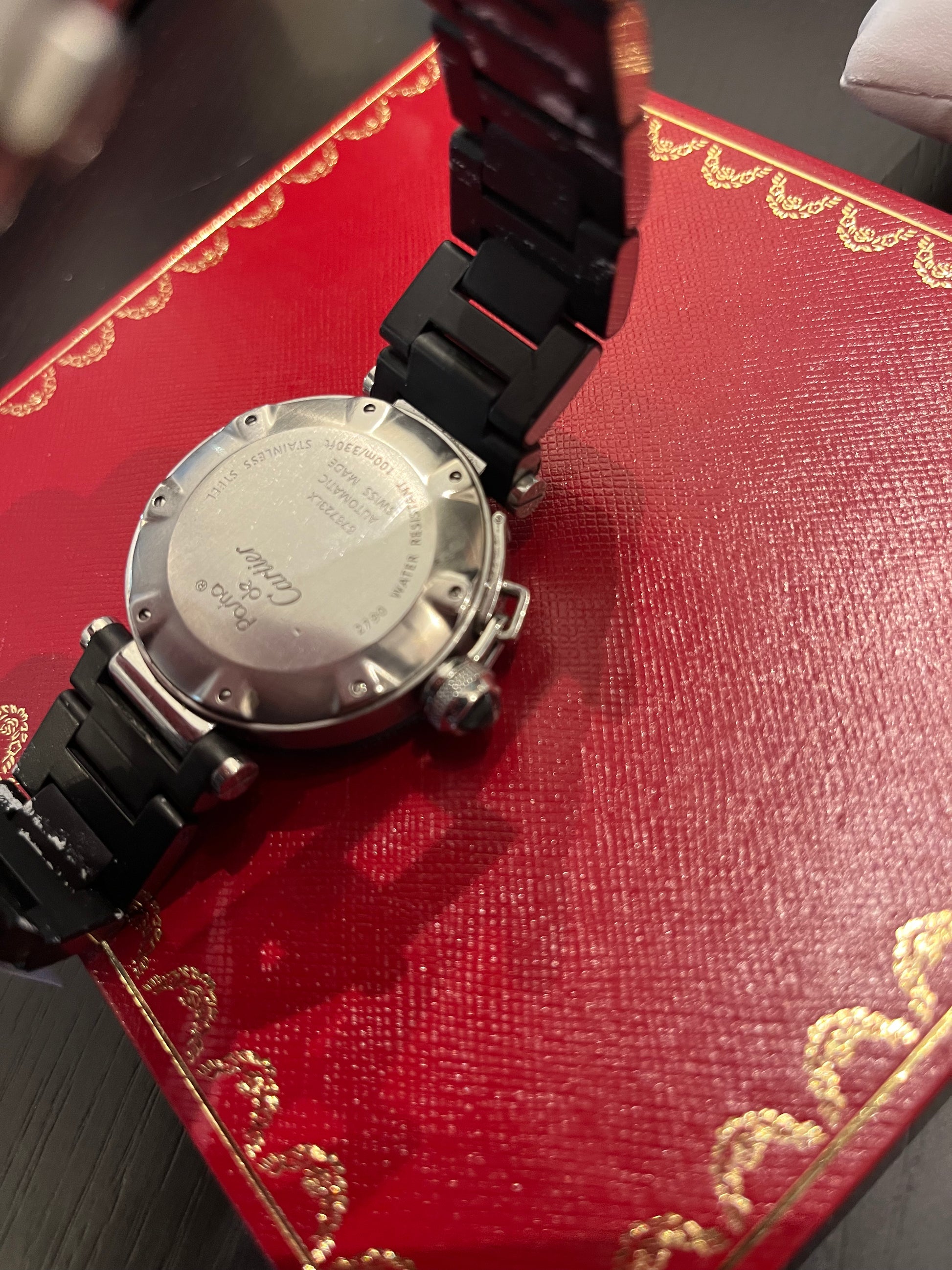 Le modèle se distingue également par son bracelet noir, ce qui lui confère une allure sportive tout en restant très chic et adapté à une utilisation quotidienne. Son design moderne et élégant se prête parfaitement à une utilisation en milieu urbain, tout en affichant une touche de sophistication qui fait la réputation de Cartier.